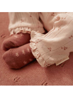 -Morbido capo in maglia ti avvolge in un incantevole melange di toni rosa. Le graziose balze sulle spalle aggiungono un accento giocoso al design, mentre il delicato ricamo floreale sul davanti lo rende ancora più dolce. I bottoni effetto legno completano l'outfit con un tocco di eleganza.