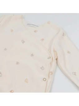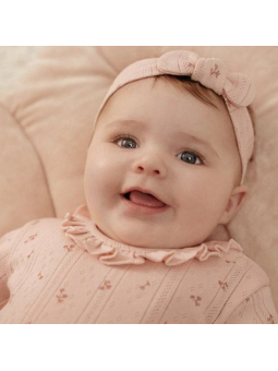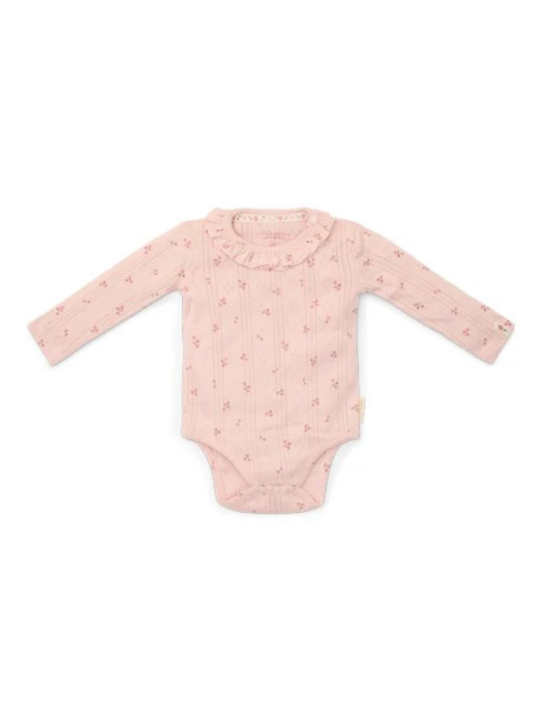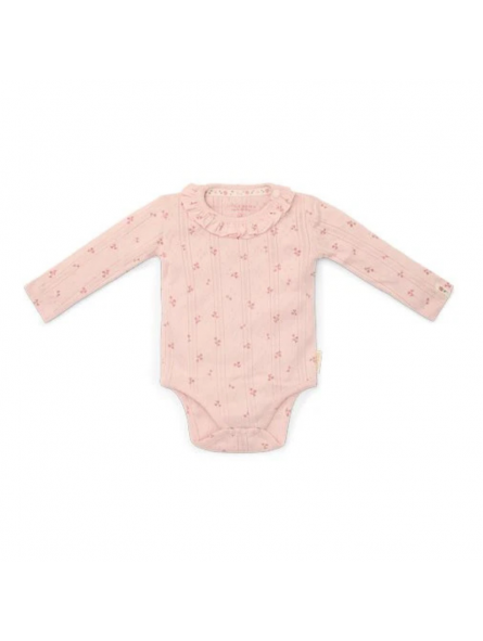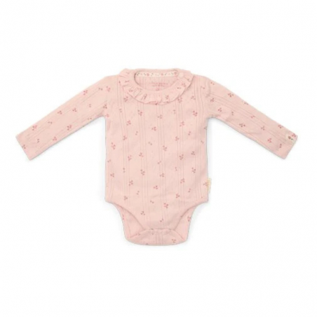 -Realizzato in morbido cotone organico, combina comfort con un design bellissimo. La raffinata struttura a puntelle del tessuto, in un bellissimo tonalità rosa chiaro, è arricchita da una stampa incantevole di piccoli fiori. Le balze lungo lo scollo aggiungono un tocco extra di stile. Il pratico chiusura a bottone nell'inguine rende facile cambiare i pannolini.