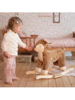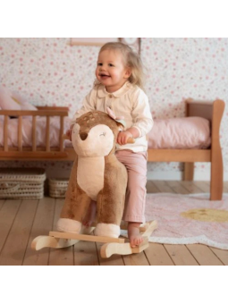 Sali su questo simpatico giocattolo a dondolo a forma di cervo...